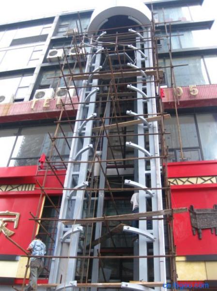 豎向荷載主要是井道鋼框架自重、圍護(hù)結(jié)構(gòu)荷載、電梯機(jī)房樓面荷載(有機(jī)房井道)、曳引設(shè)備支承荷載、井道屋面荷載等。對于較高的井道,井道與原有結(jié)構(gòu)拉結(jié)節(jié)點宜作成豎向滑動支承,以釋放豎向荷載作用下的井道位移,否則豎向荷載較大時將產(chǎn)生較大的附加內(nèi)力。一般可以通過化學(xué)螺栓的端板上設(shè)滑槽孔來實現(xiàn)。這種方法對于減小因井道基礎(chǔ)沉降產(chǎn)生的井道附加內(nèi)力也十分有利。 ·井道在風(fēng)荷載作用下的受力特征分析: